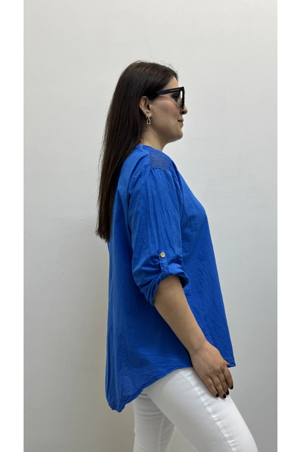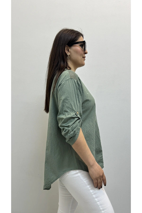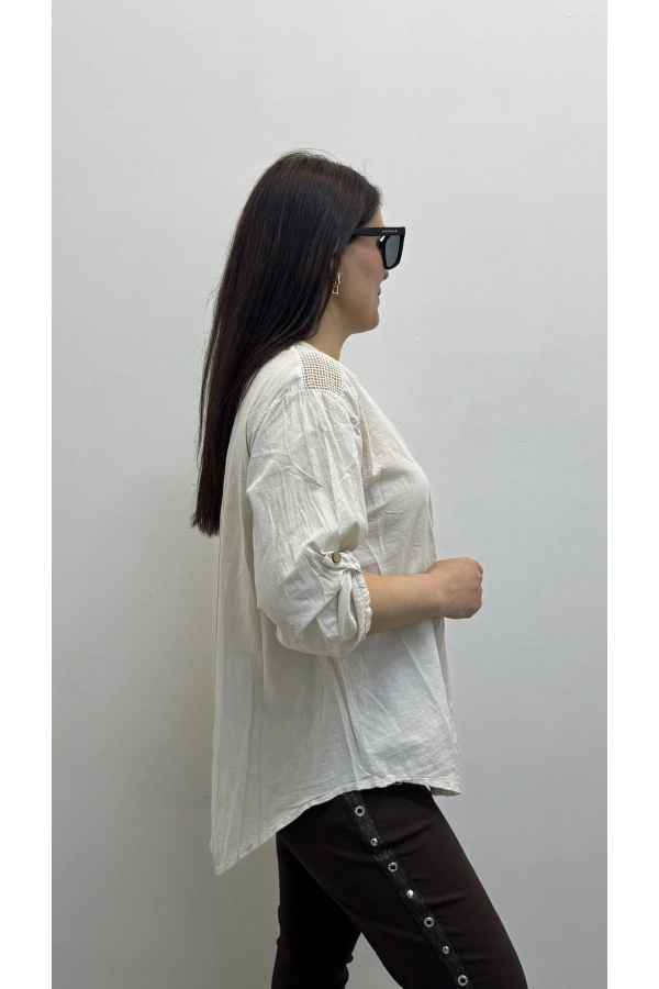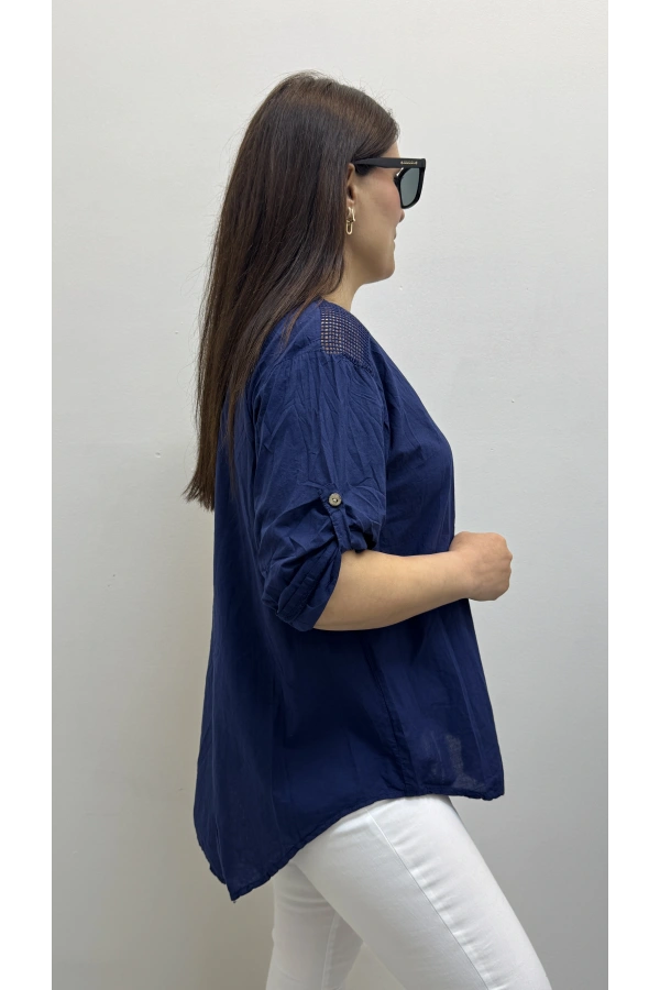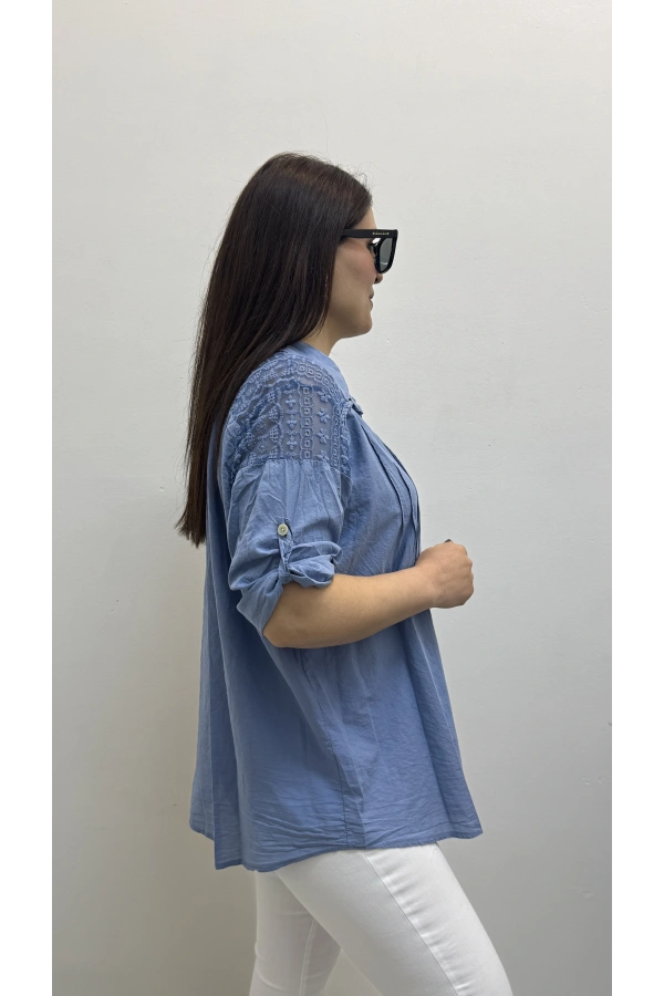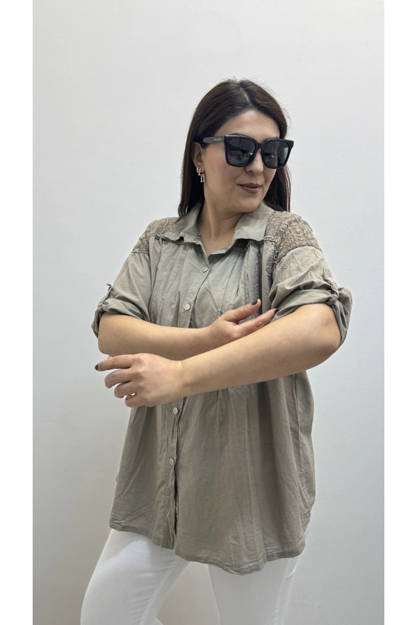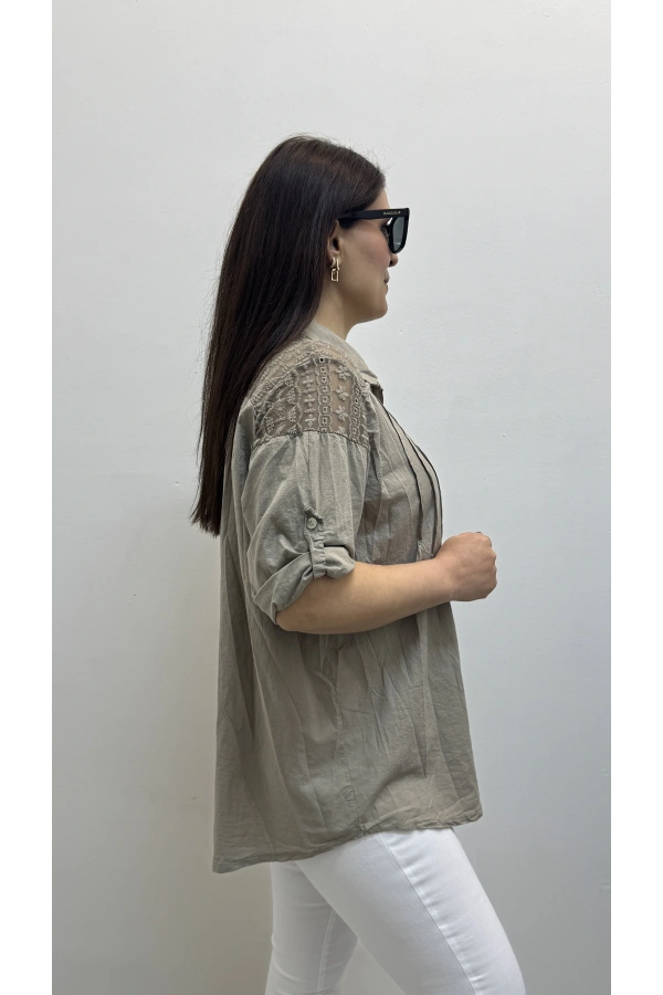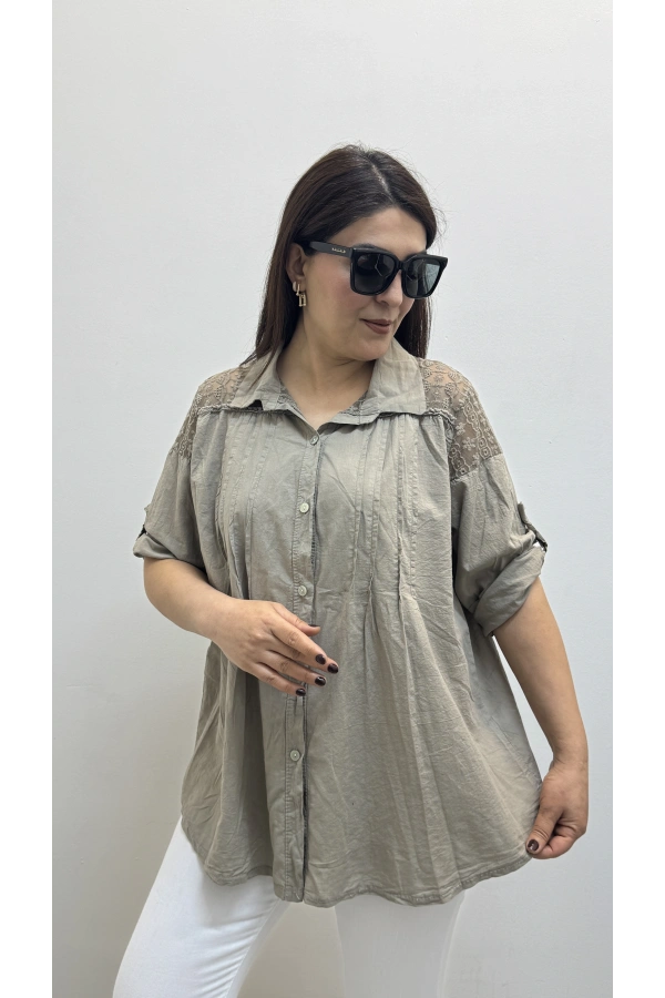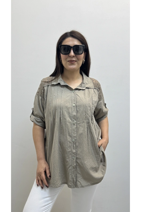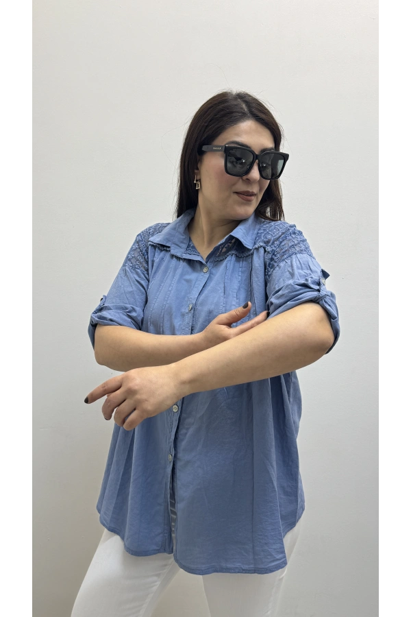 Omuz Tül Ve Dantel Detaylı Pile Dikişli Siyah Renk İthal Gömlek Hakkında