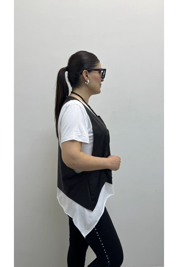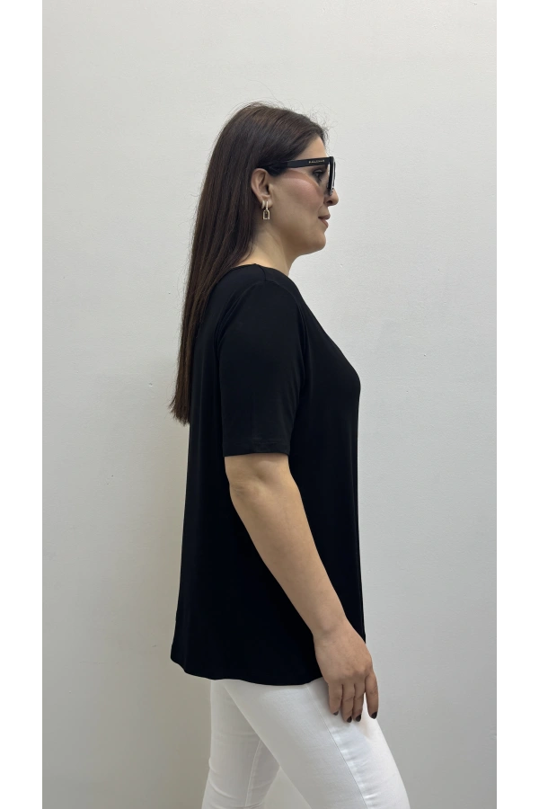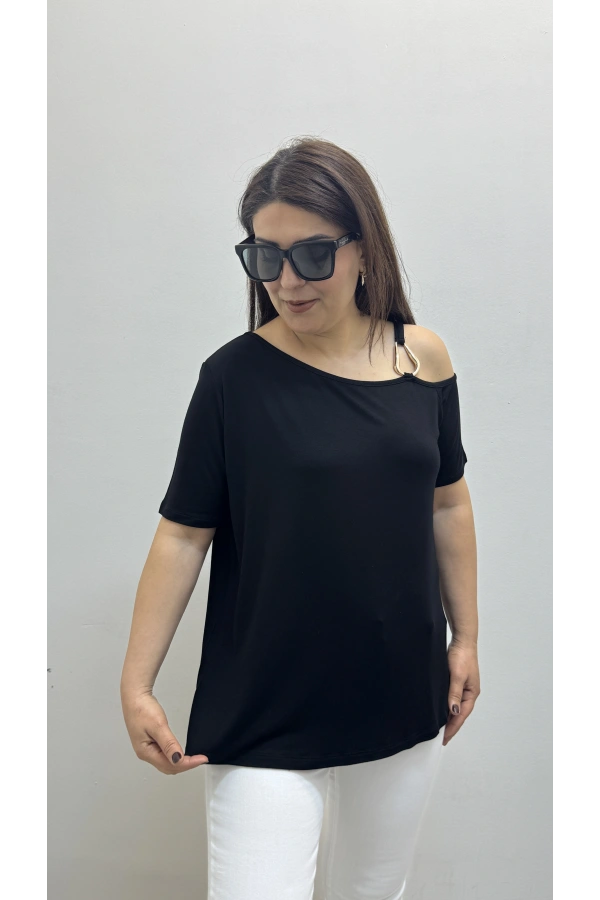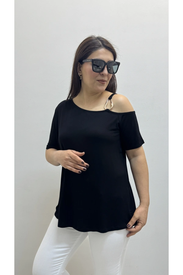 Omuz Tül Ve Dantel Detaylı Pile Dikişli Siyah Renk İthal Gömlek