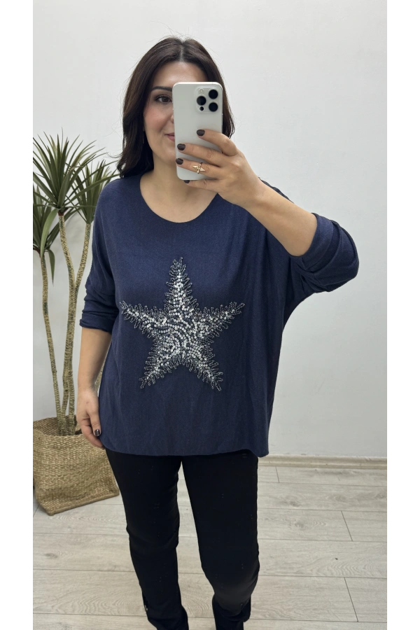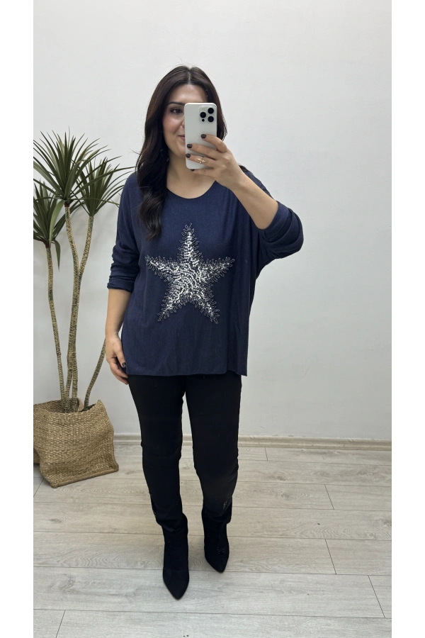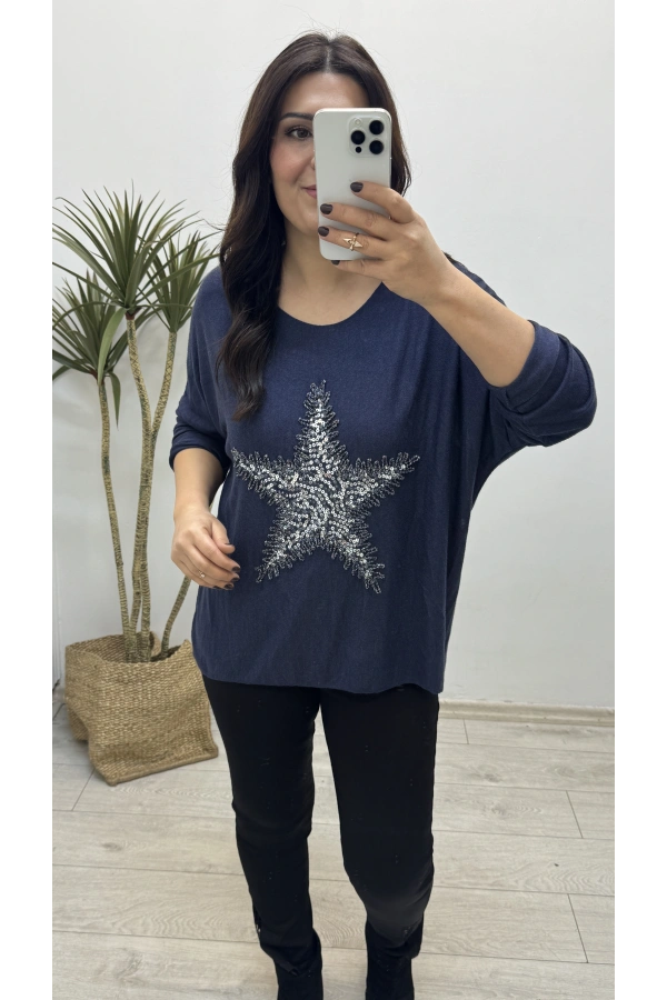 Yıldız Desenli Lacivert İthal Bluz