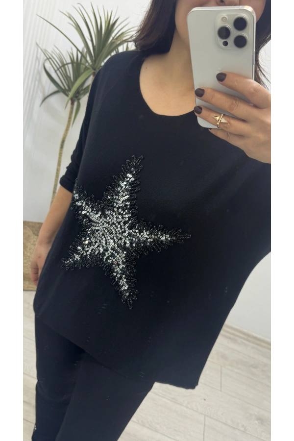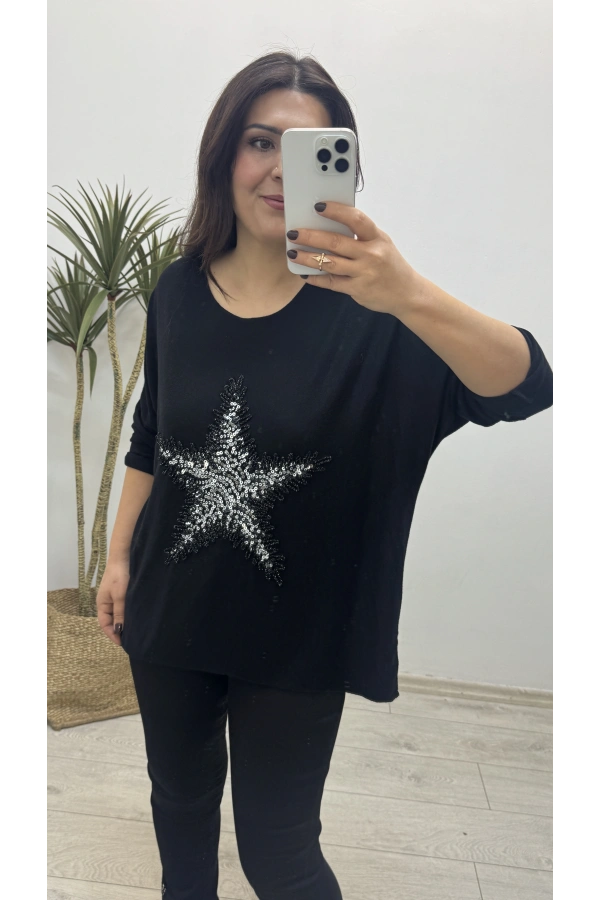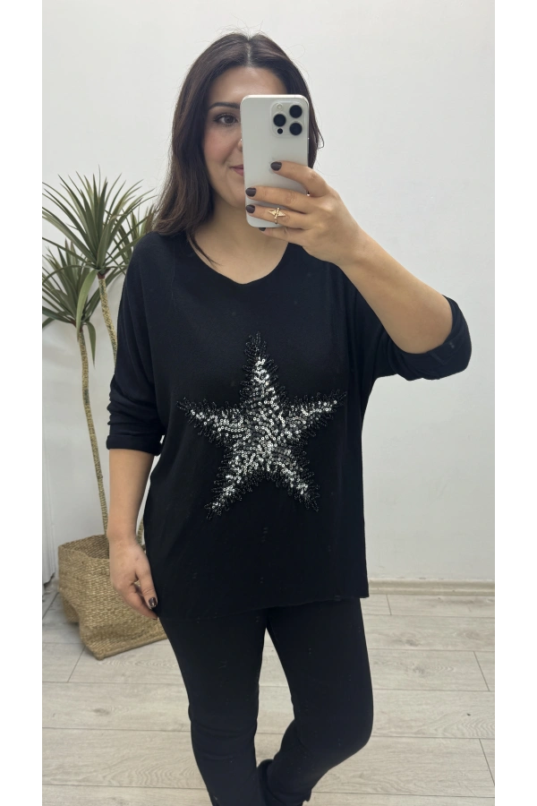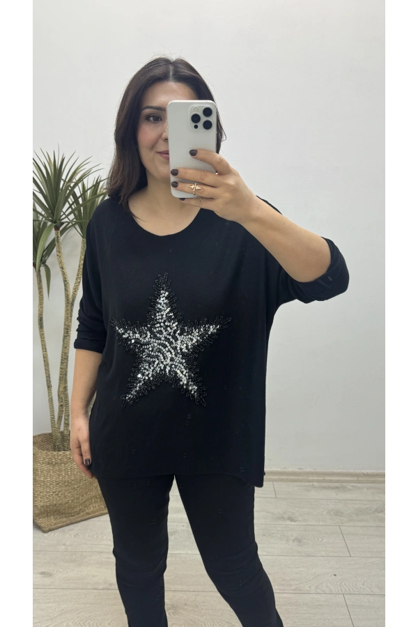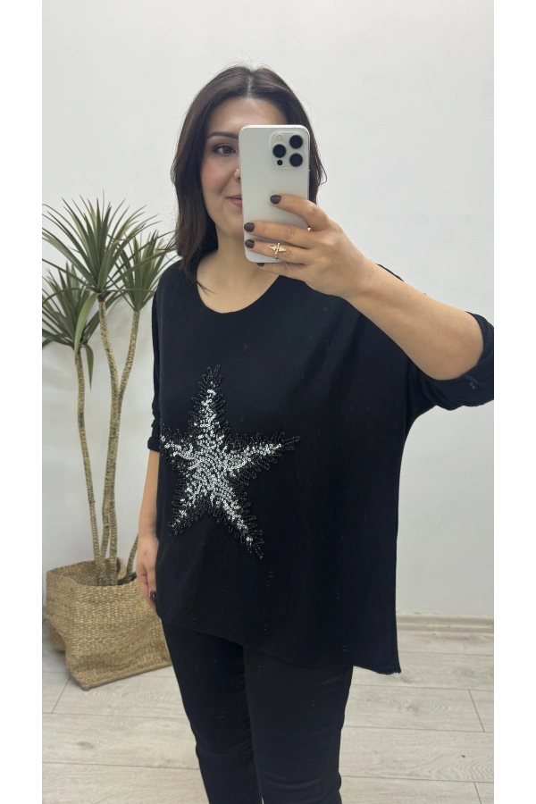 Yıldız Desenli Siyah İthal Bluz