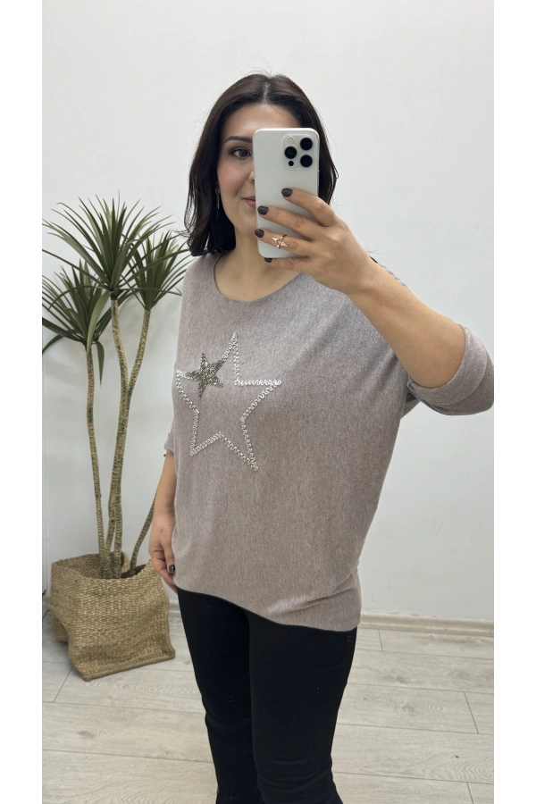 Yıldız Desenli Vizon Rengi İthal Bluz