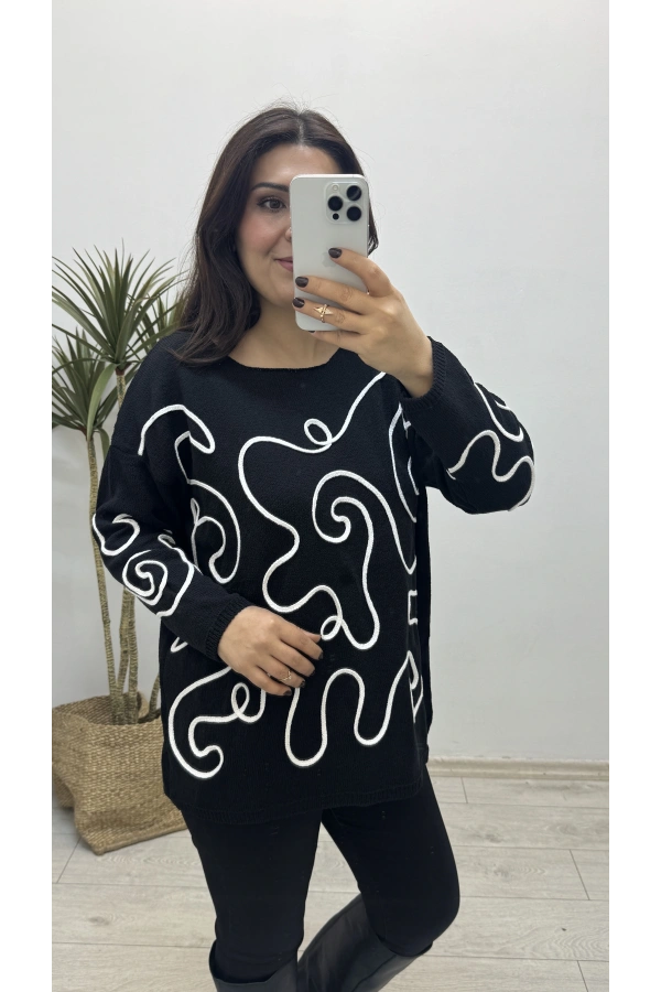 İthal Melek Kanadı Baskılı Dirsek Kol Vizonrengi Kazak