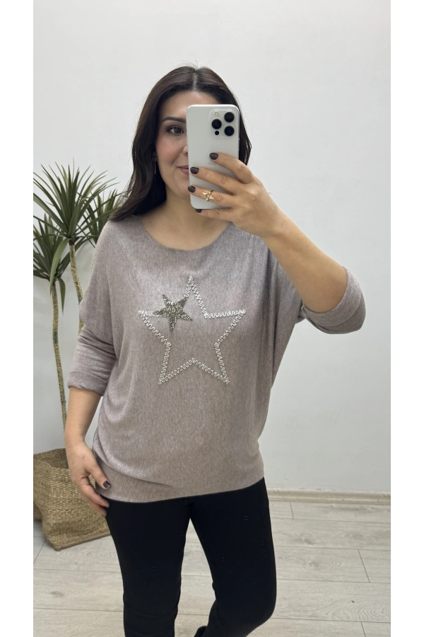 Yıldız Desenli Vizon Rengi İthal Bluz