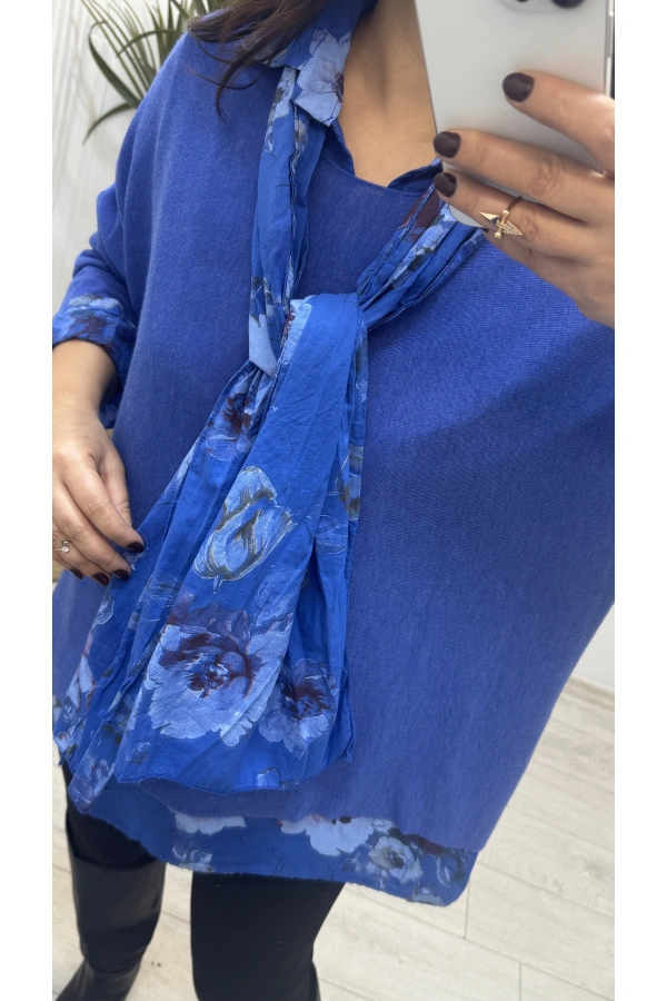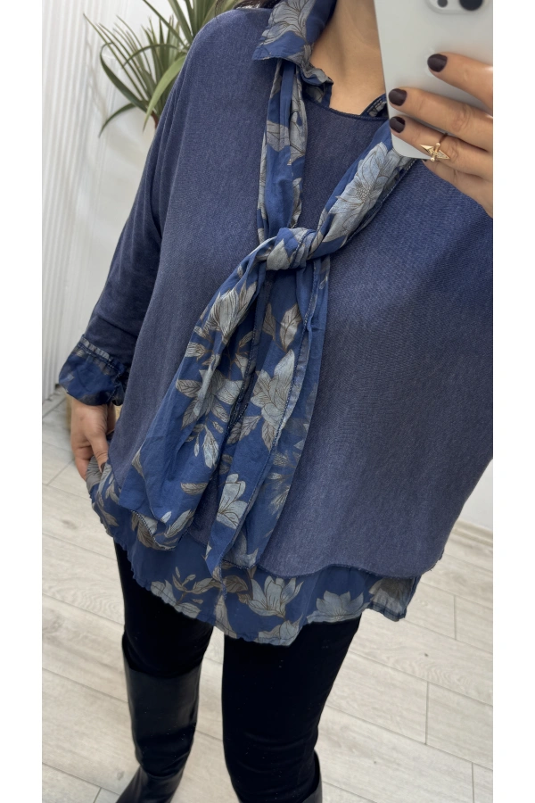 Triko Örme Dirsek Kol Mavi İthal Bluz