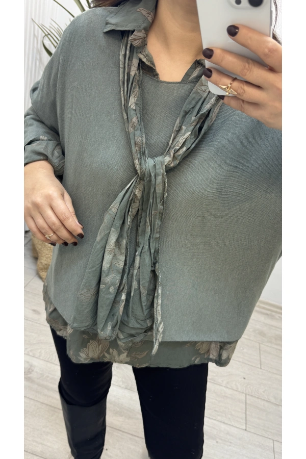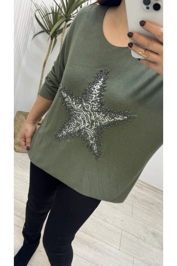 Yıldız Desenli Haki Yeşil İthal Bluz