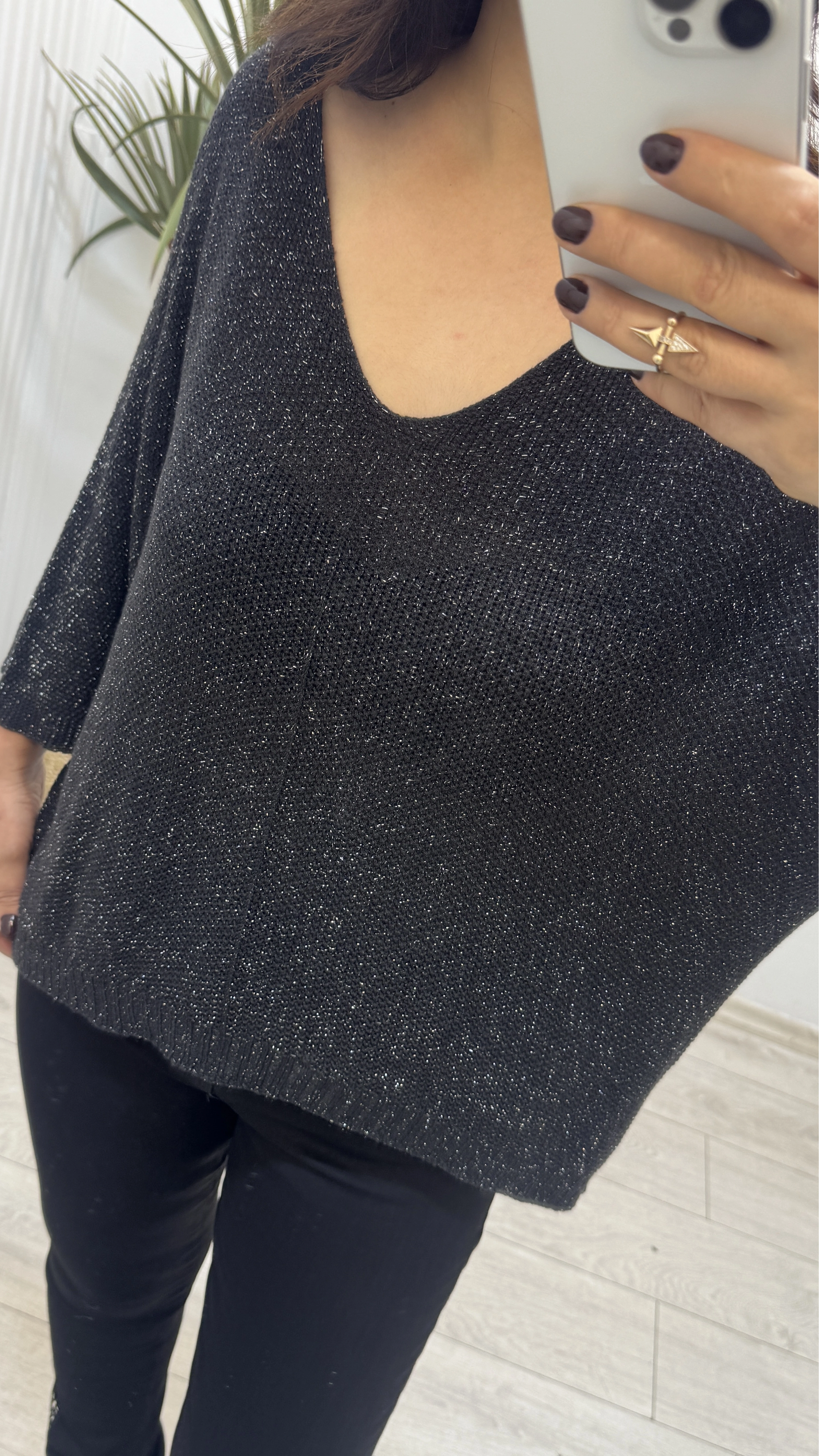 V Yaka Siyah Simli Triko Bluz Hakkında