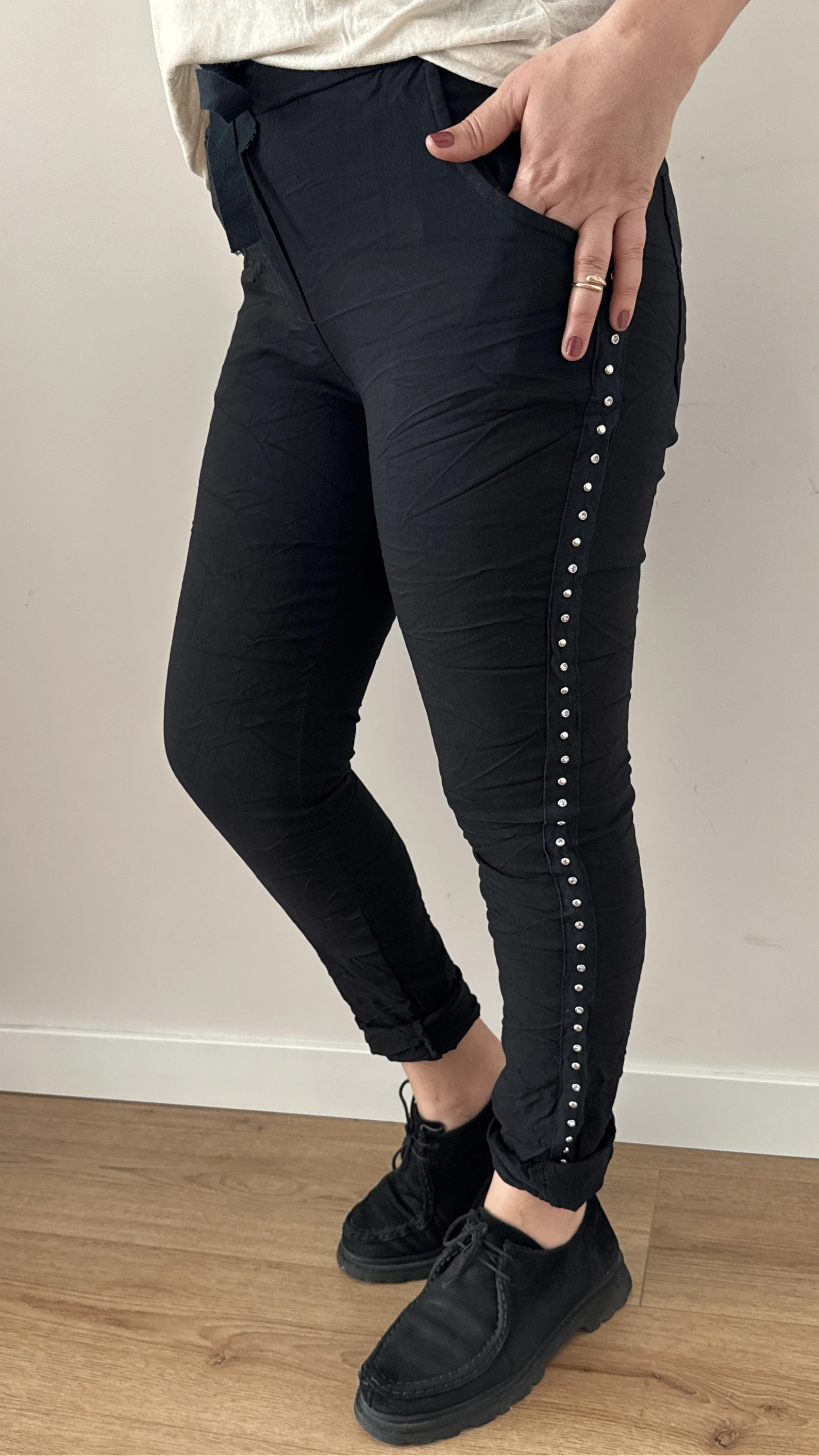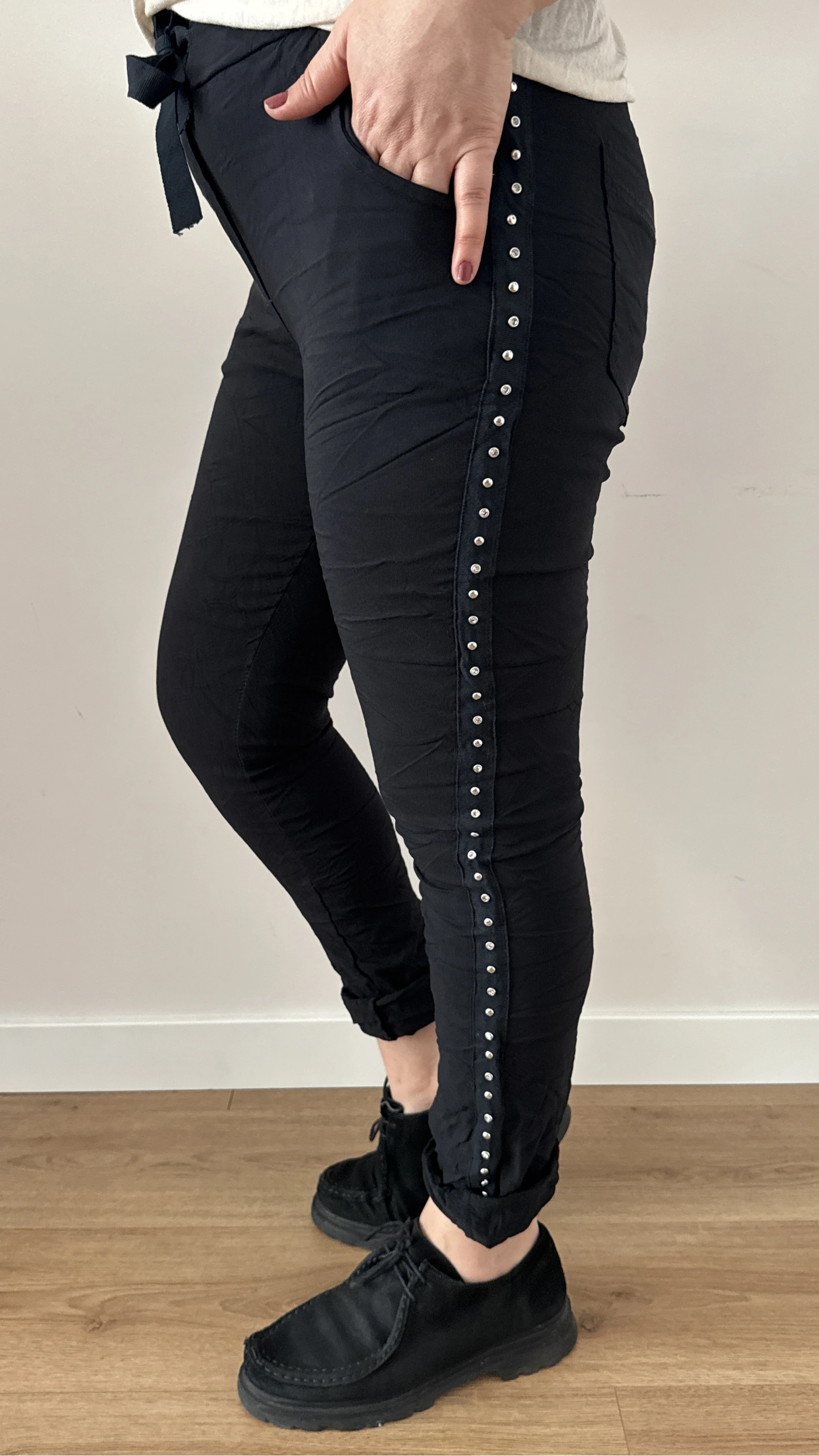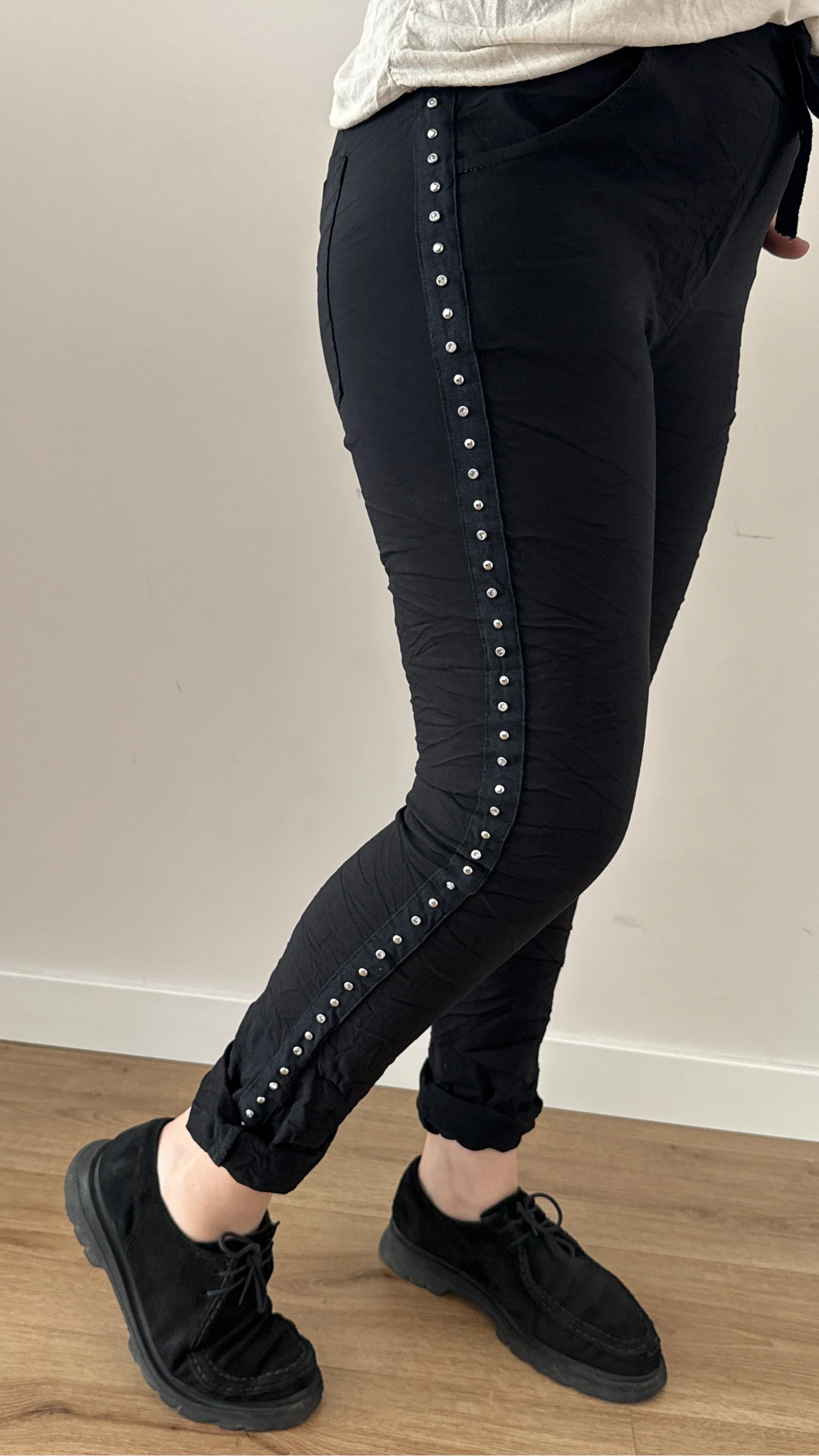 Yan Şeritli Taş Zımbalı Siyah İthal Pantolon Hakkında
