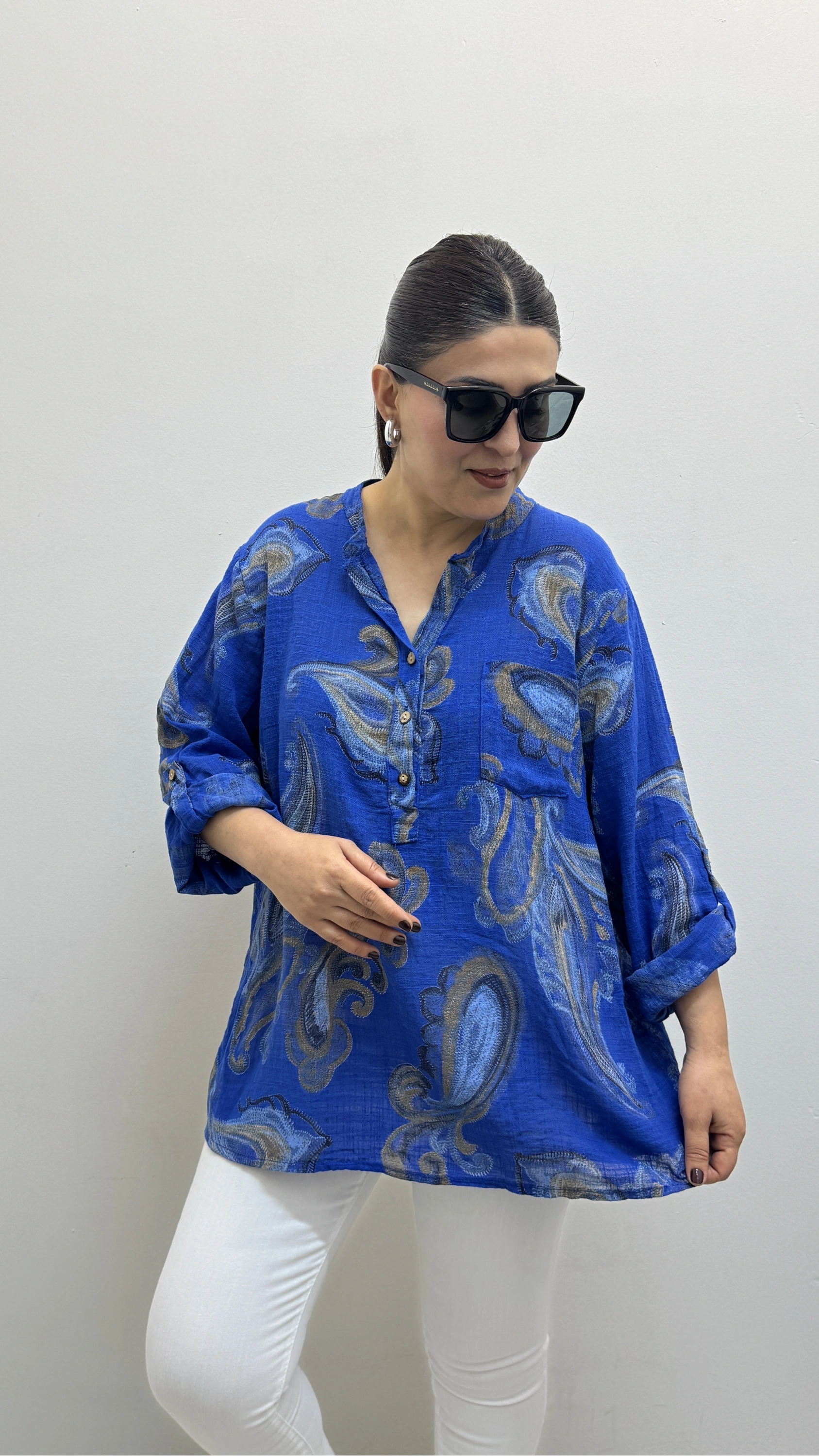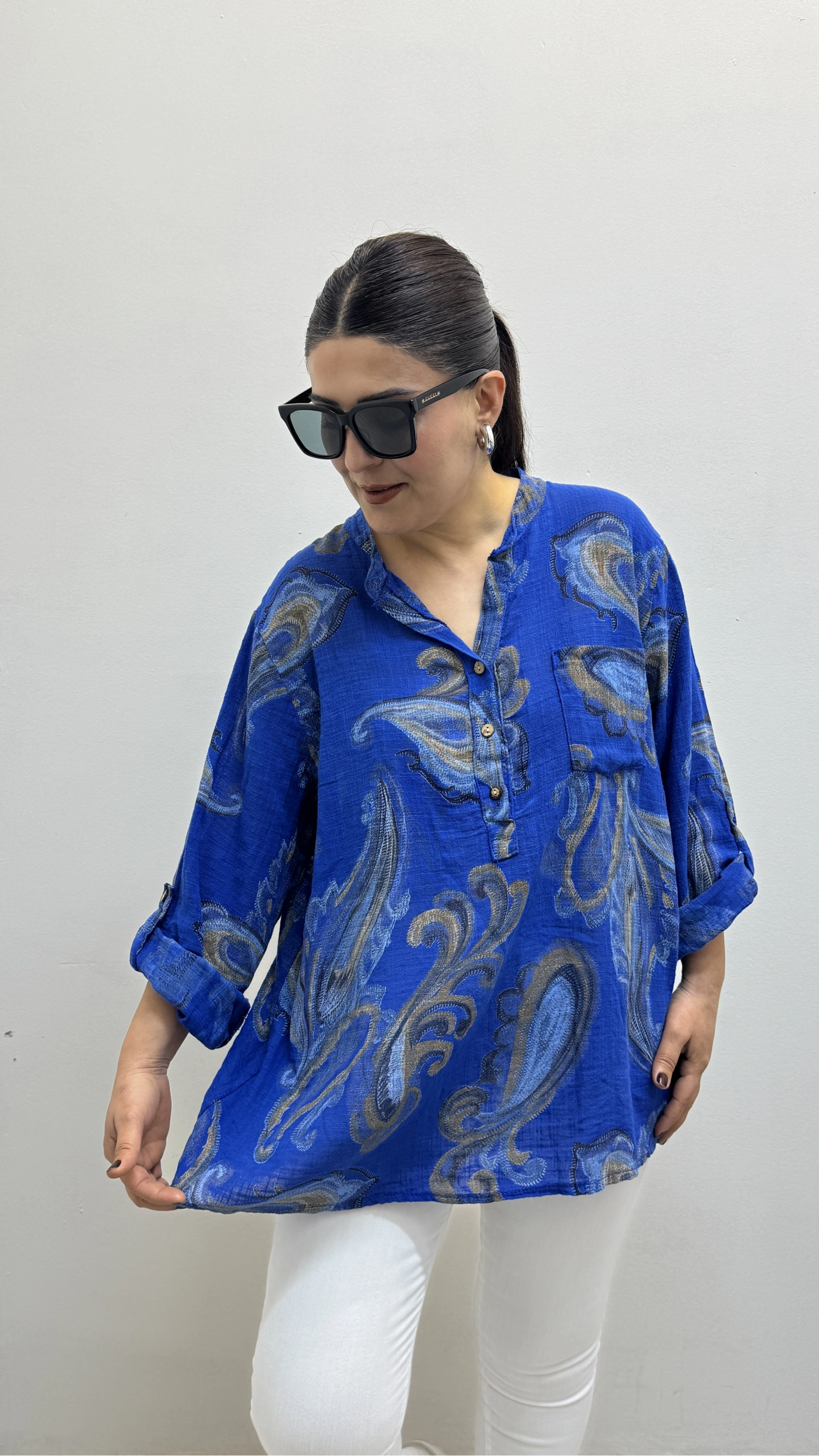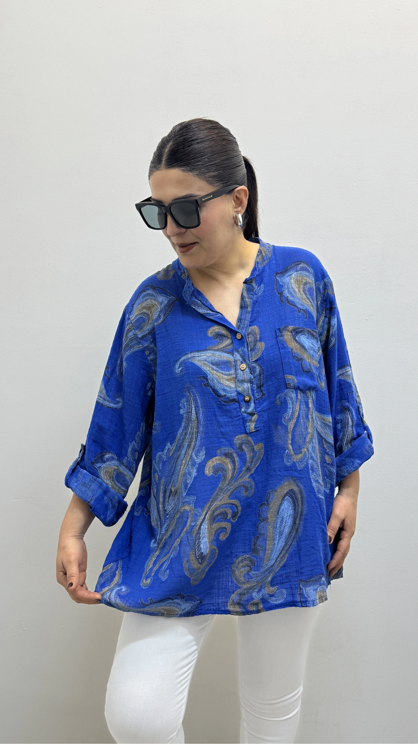 Yaprak Desenli Hakim Yaka Saks Mavi İthal Gömlek Hakkında