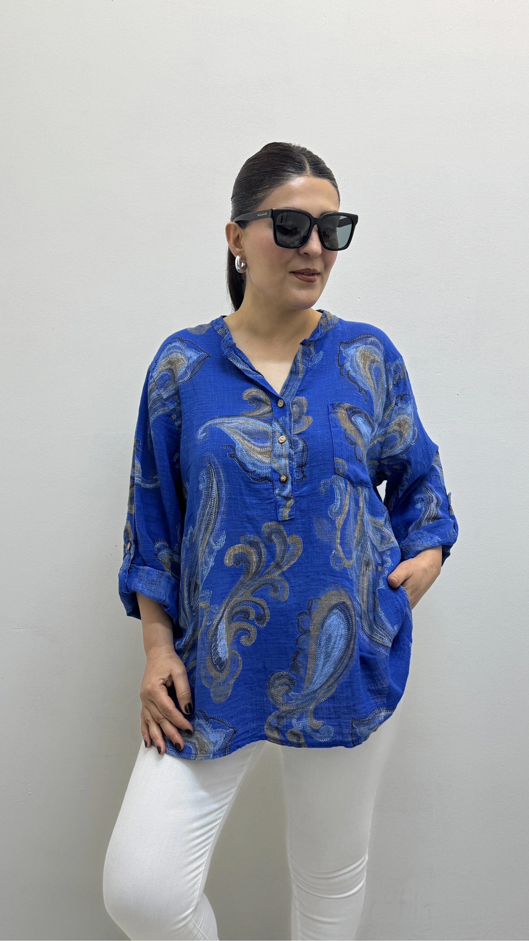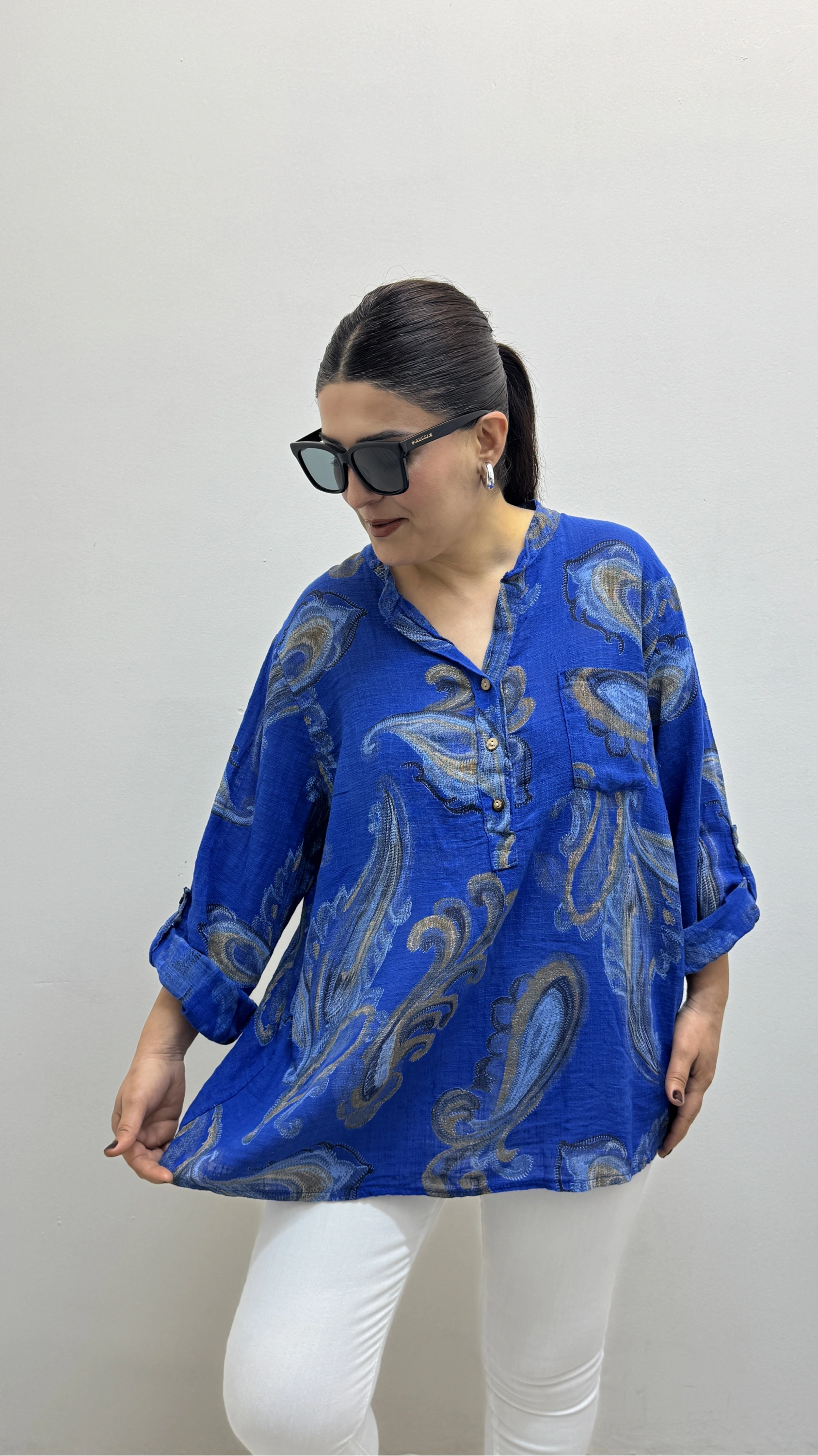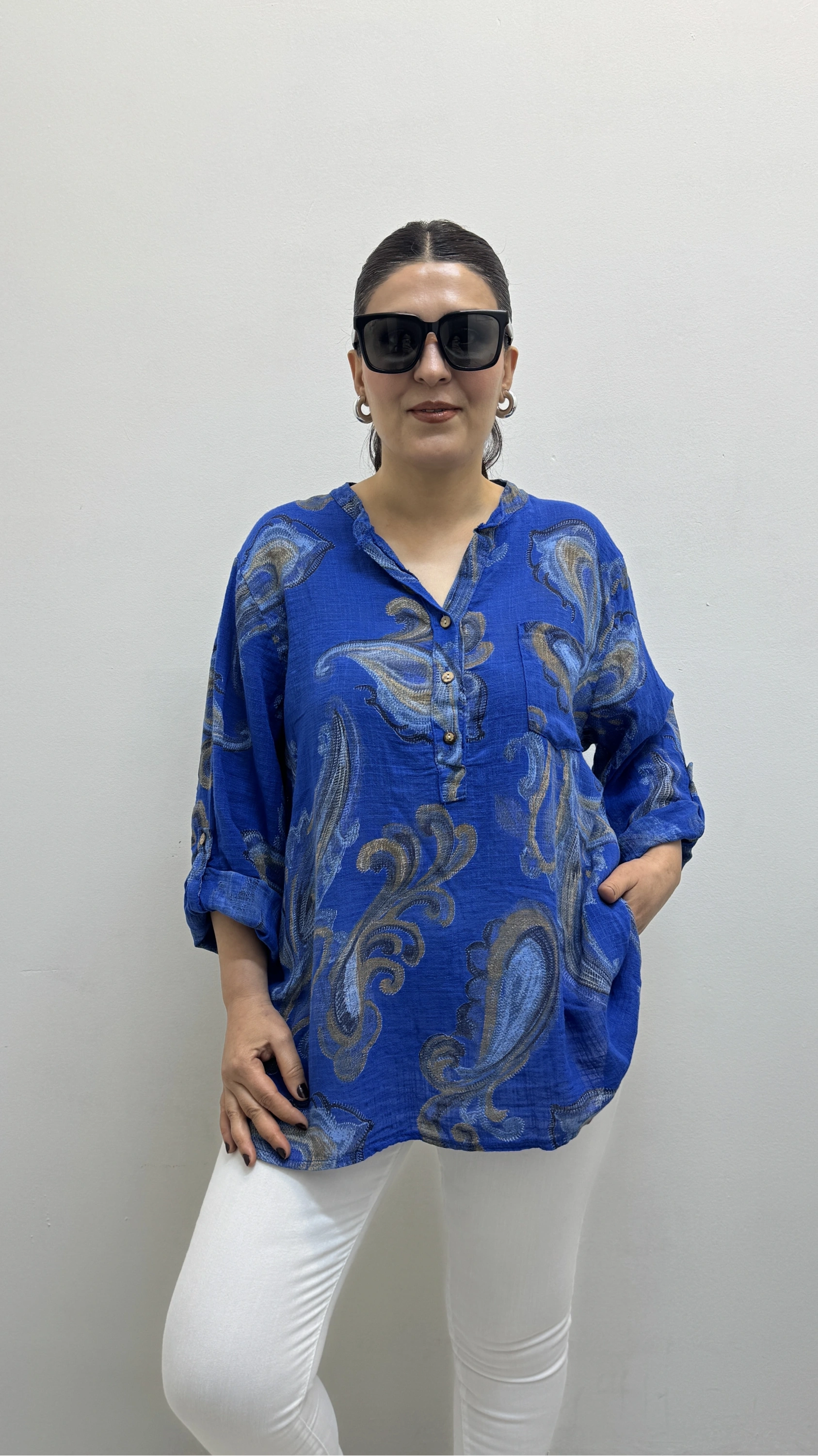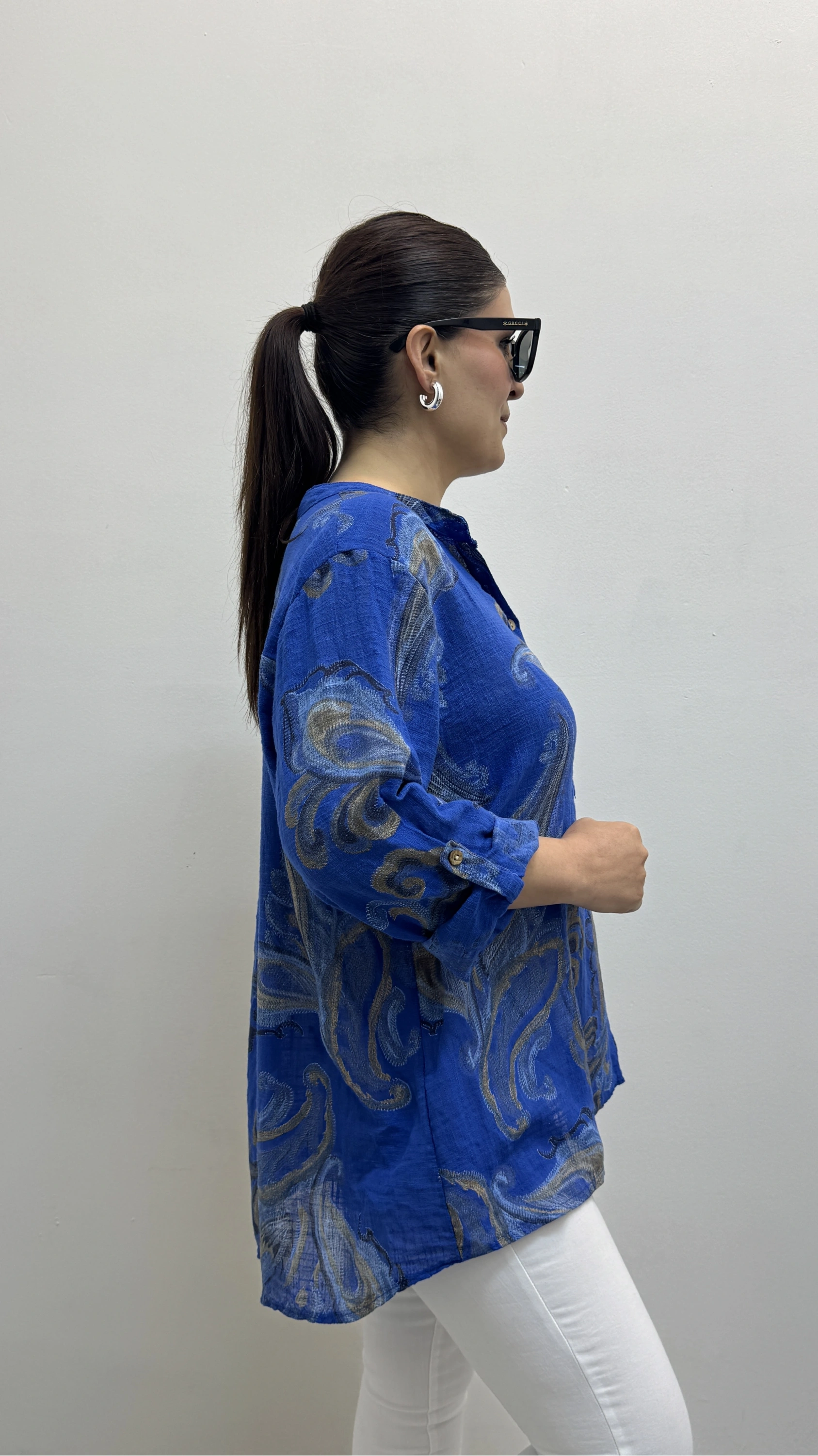 Yaprak Desenli Hakim Yaka Saks Mavi İthal Gömlek Hakkında