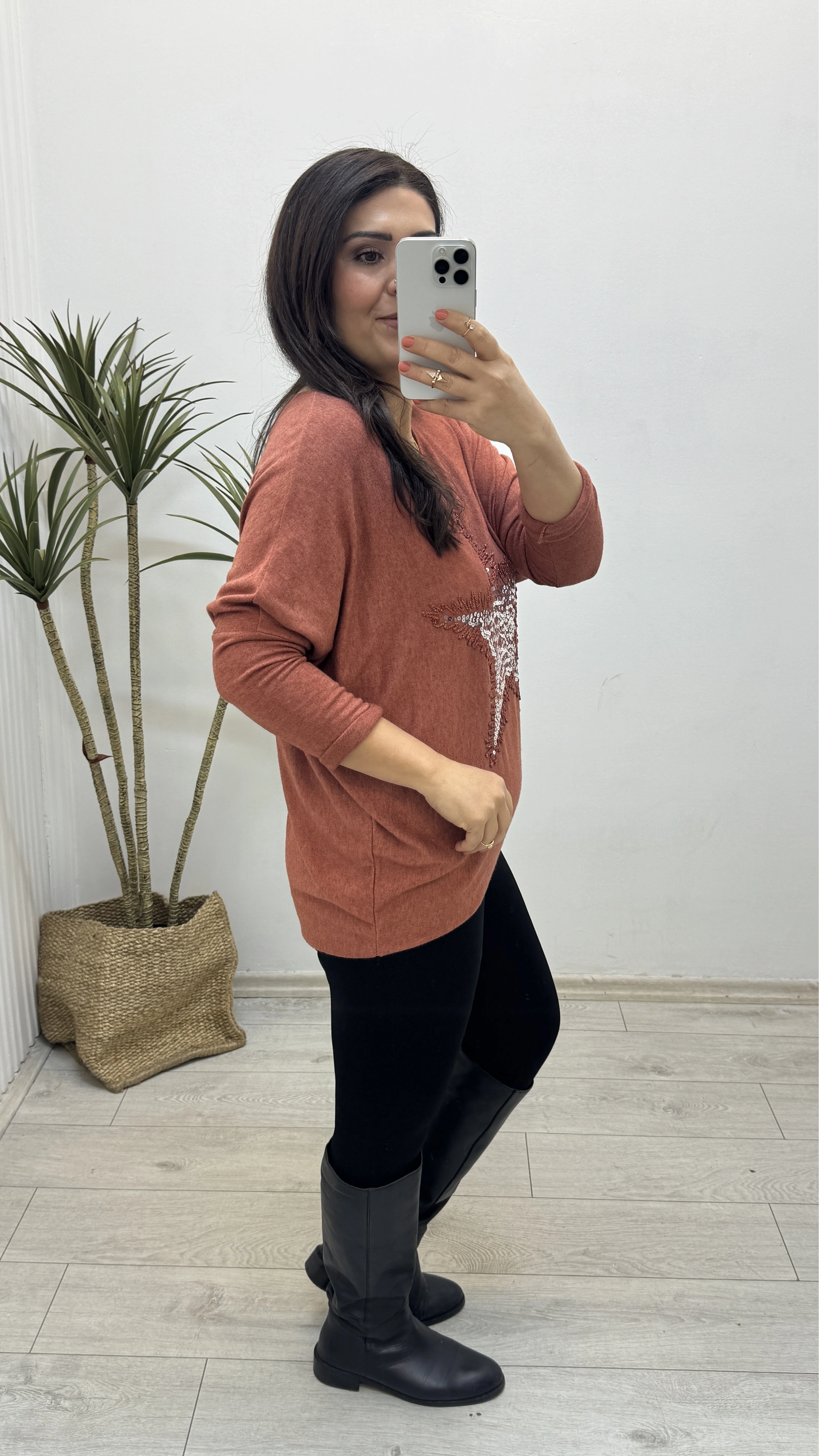 Yıldız Desenli Tarçın Rengi İthal Bluz Hakkında